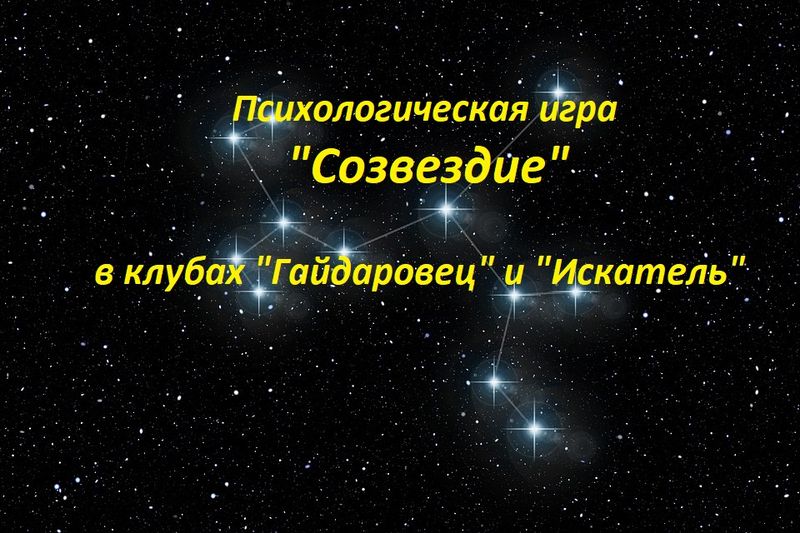 В ноябре-декабре 2020 в объединениях клубов "Гайдаровец" и "Искатель" прошла психологическая игра "Созвездие". Посмотрите, сколько звезд в нашей удивительной Галактике! Желтые - общительные и добродушные, красные - отличные организаторы и лидеры, зеленые - знатоки своего дела и верные друзья, синие - трудяги и чуткие сердца... А главное, сколько у них способностей и талантов! Впрочем, смотрите сами.